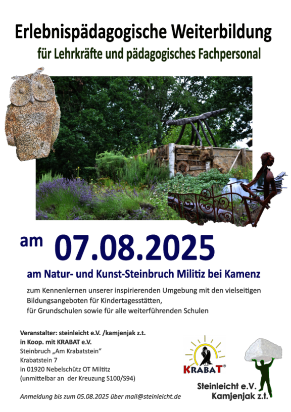 AUSBLICK: 2026 ist unser Jubiläums-Jahr der Internationalen Bildhauerwrkstatt am Krabatstein zu Miltitz. zum 20. Male werden sich internationale Künstler im Steinbruch einfinden, um in diesem Jahr erstmals mit vorgegebenen Thema, ihre Kunst zu zeigen. Thema wird sein: "Johan von Schadowitz, die Lebens-Spuren unseres KRABAT"